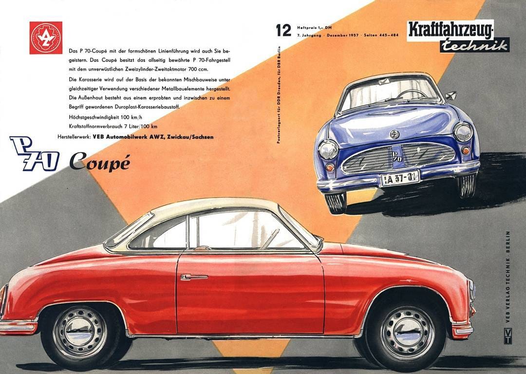 The AWZ P70 "Zwickau" Coupé was made before the Trabant, in the same ex-Auto Union factory that eventually started producing the Trabant.