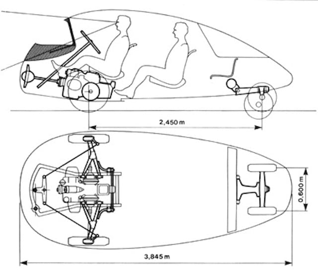 The final prototype of 10 built in total, the C10 weighed in at 382 kg (842 lbs). Its shape, weight, and 12-horsepower engine gave it a top speed of, incredibly, 110 km/h (68 mph) and fuel consumption figures as modern as the typical hybrid: less than 5 L/100 km (50 US mpg).