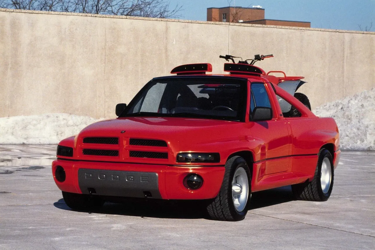 In 1990, Dodge channelled the spirit of the Li'l Red Express into more of a TV’s Viper -inspired take on the small, short, city slickin' pickup truck. Information on the resulting LRT truck is thin, but I suspect it's a Ram'd Dakota, judging by an earlier version of the concept. (see below)