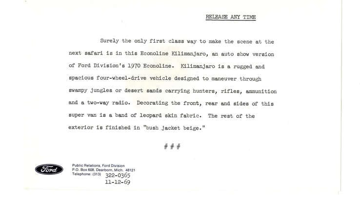 Econoline Kilimanjaro press materials • via Ford