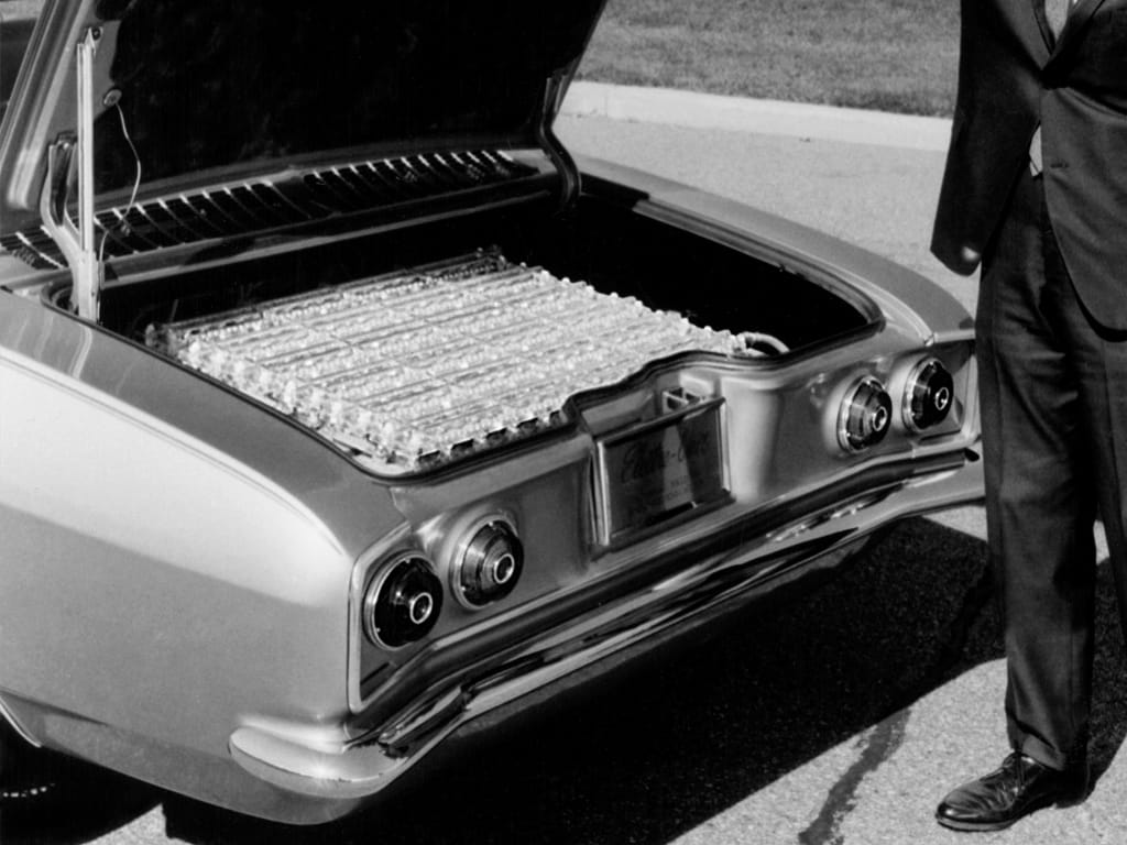 At a chonky 453 kg (1,000 lbs) heavier than the gasoline Corvair, acceleration was about as brisk as a modern smart fortwo, at 16 seconds from zero-to-100 km/h (62 mph).