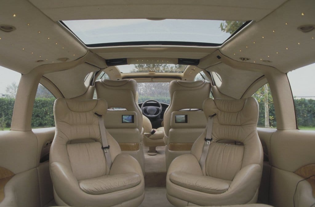 I‘m most amazed that Giugiaro managed to cram in all manner of luxury: captain‘s chairs for everyone, TV screens galore (even if my phone now sports a larger display), sliding sunroof, glass rear roof section, and ‘starry‘ fibre optic interior accent lights in the headliner years before Rolls-Royce offered the same.
