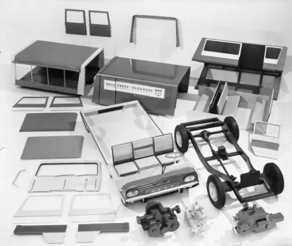 Stevens’ Wide-Trac prototype, in comparison, had a 70-inch wheel track. Having a much more stable platform was part of the appeal, but equally so was the greatly increased space for, well, anything. Stevens directed the team at Crown Coach, a school bus manufacturer in California, to create a single cab truck prototype — but the designer had several different ideas for how the rear cargo space should be furnished.