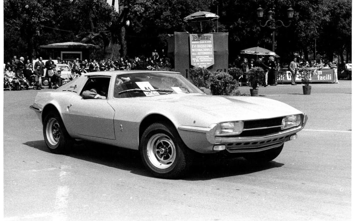 By 1968, Scaglione had taken up work by clothing this startup Italian automaker's 2-seat mostly fiberglass sports car. It's similar, actually, to a TVR or Marcos of that vintage. With a backbone chassis and much smaller overall dimensions than larger V8-powered rivals, the Sirex was developed as a contemporary, nimble design.
