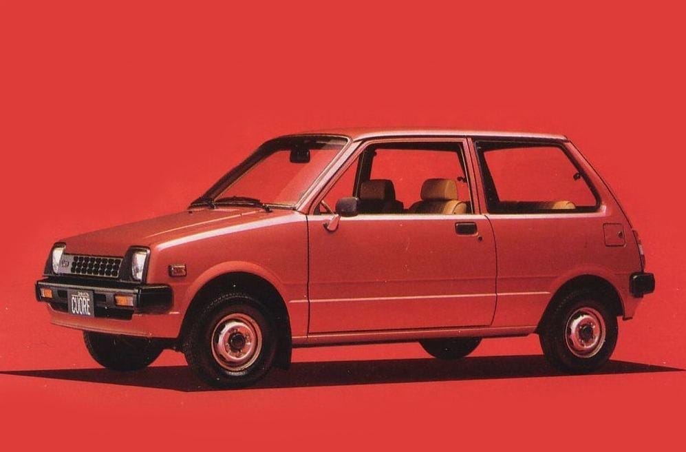 Above is a photo, sneakily taken in the early 1980s by Carlos Namba of Brazil’s long-running gold standard car publication, Quatro Rodas, of a strange-looking Daihatsu Cuore being examined by government officials.