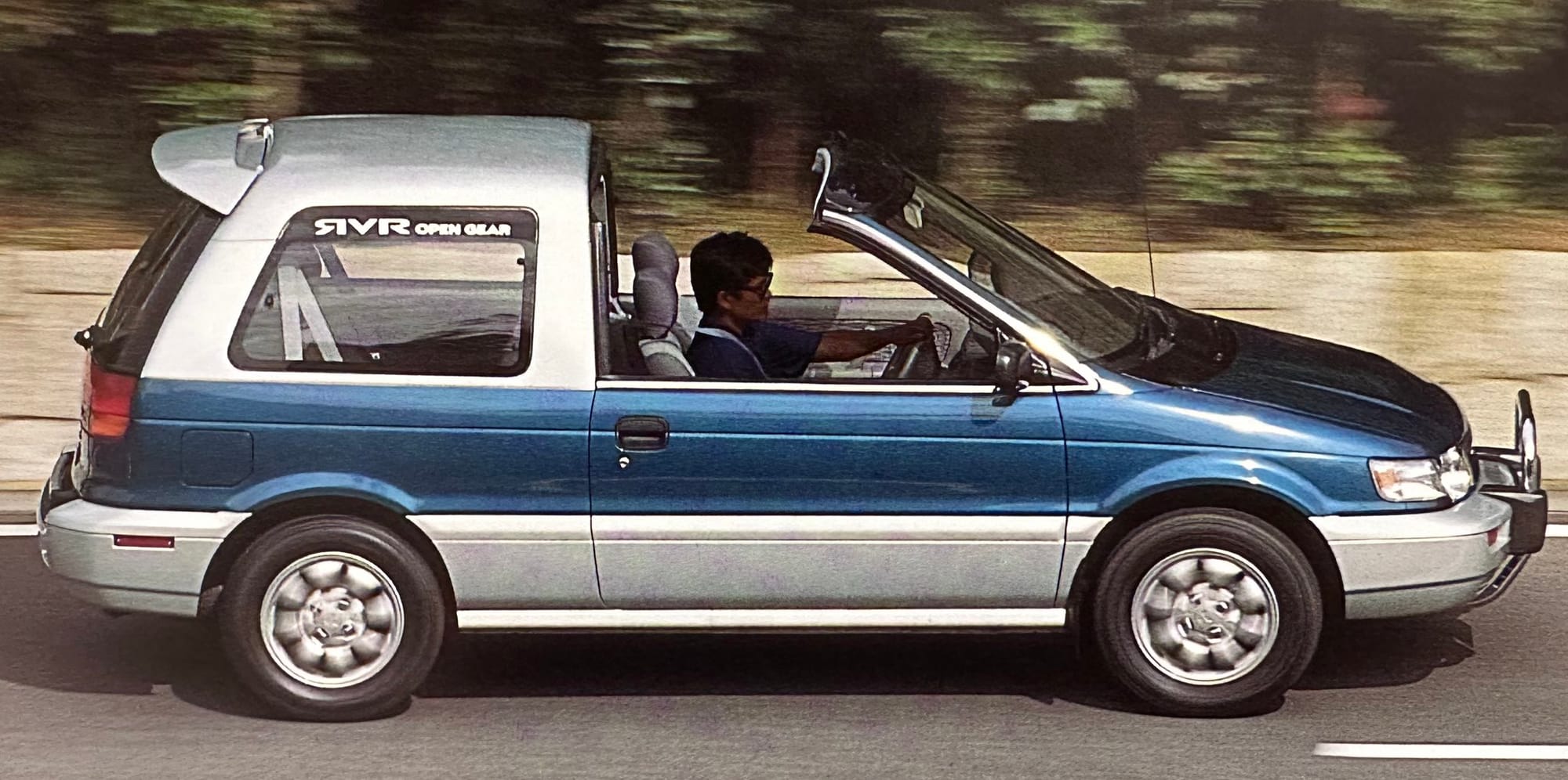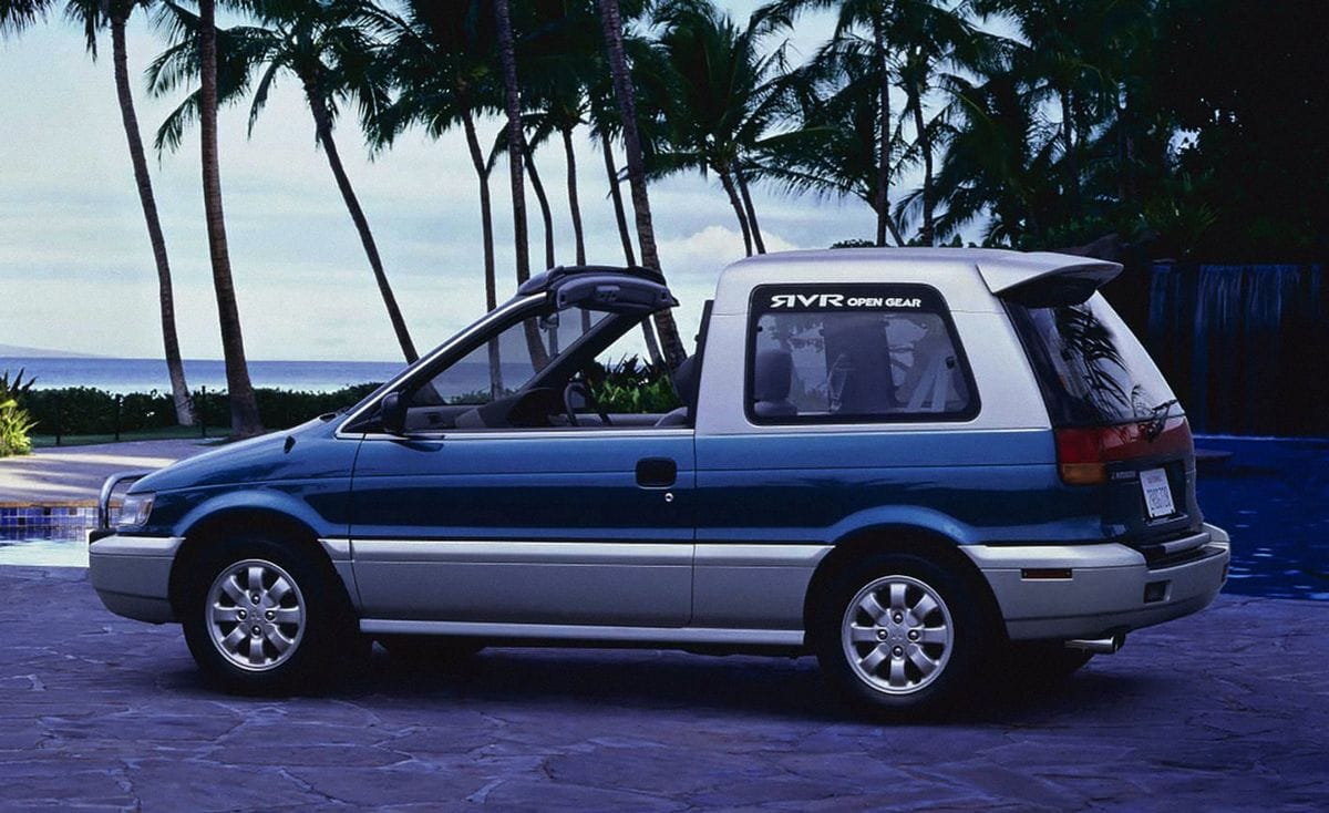 The Open Gear had a sliding top, making it a compact hatchback, crossover, and convertible all in one. With Mitsubishi’s familiar 2.0-litre 4G63 four-cylinder engine under the hood, figure 158 horsepower—more travel hair dryer than box fan.