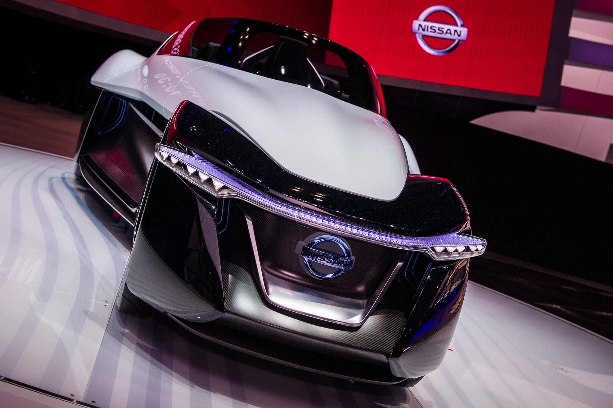 The earlier 2013 concept car version of the BladeGlider. Its overall cleaner look and conventionally attractive profile were obliterated on the later prototype cars. • Nissan