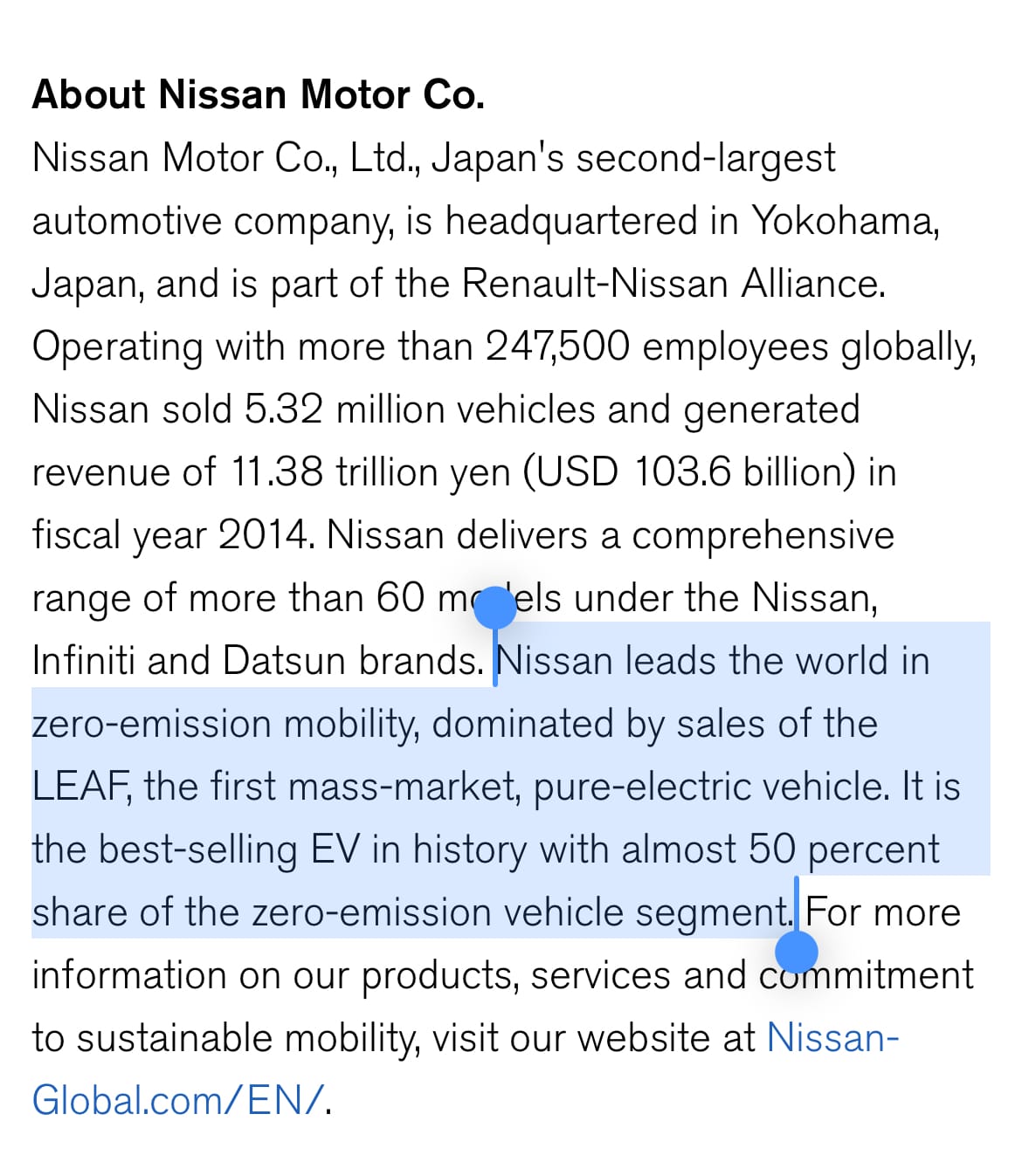 You must understand, back then, Nissan wasn’t simply Nissan — in 2014, it was the world’s leading electric vehicle manufacturer with approximately 50% of the EV market. Seriously — this was on an official Nissan 2014 press release: