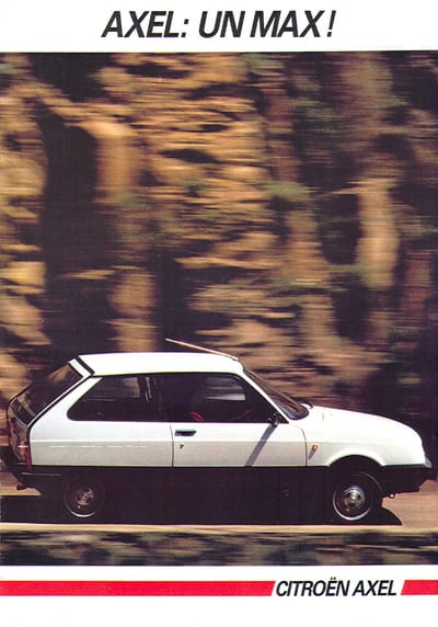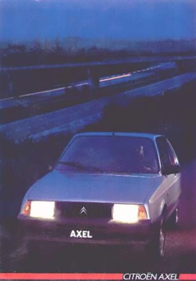 Citroën Axel promotional materials; note the slight improvement in exterior trim for larger markets such as Belgium and France.