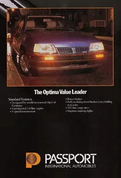 A Passport Optima (sold in Canada from 1988) is a Daewoo-built version of the Opel Kadett E…one that was, according to automotive media of the time, not built very well.
