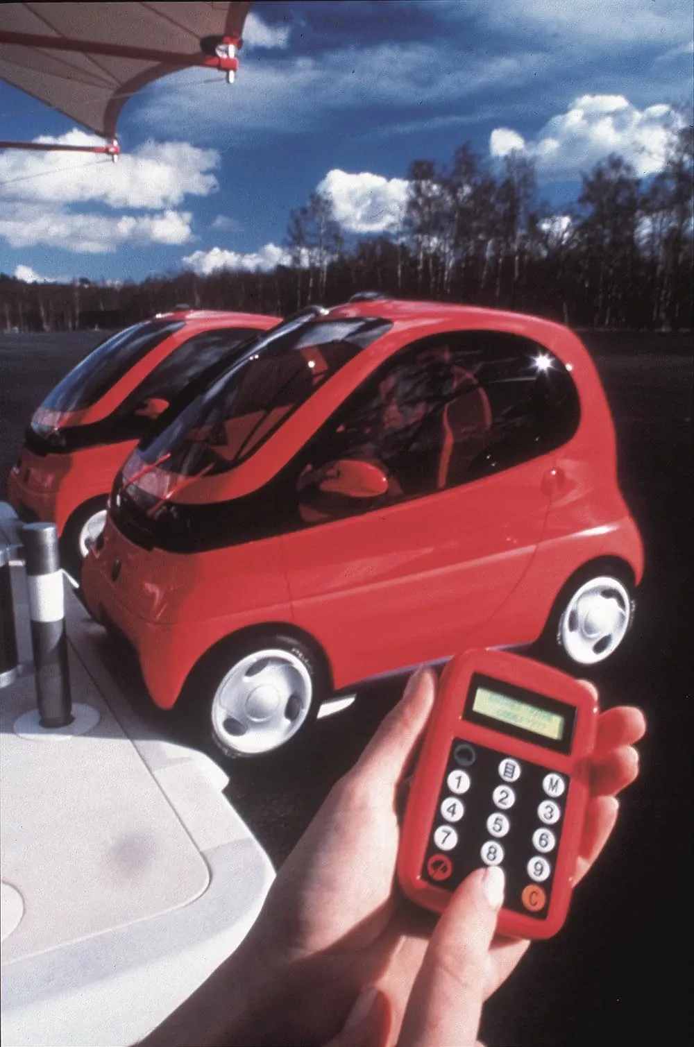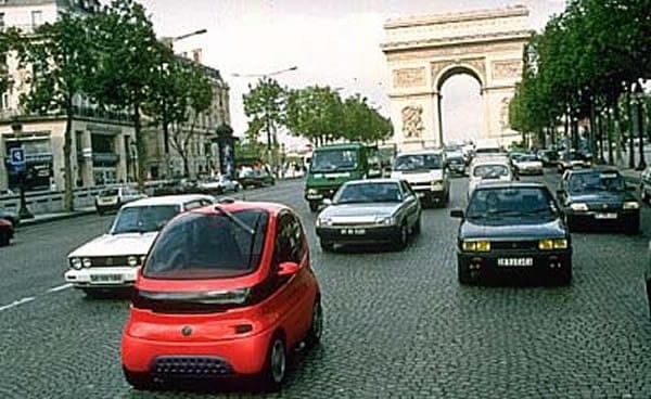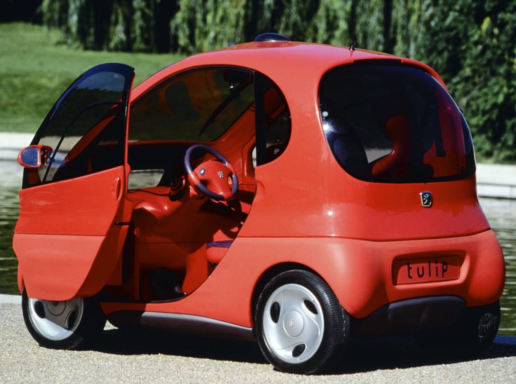 The Tulip was a network of induction-charged electric city cars that were charged, docked, and rented from small "relay points" that today are mostly analogous to the Tesla Supercharger style of charger that now dominate the electric car space.