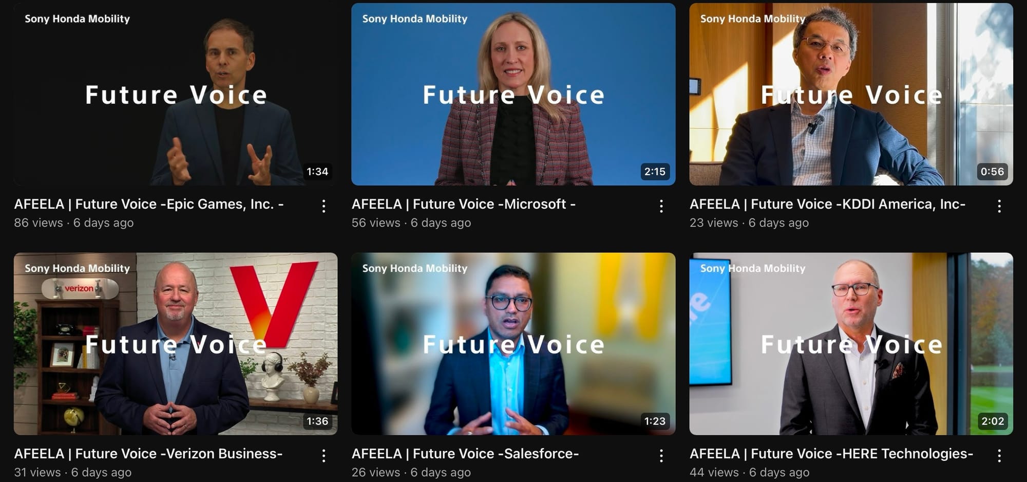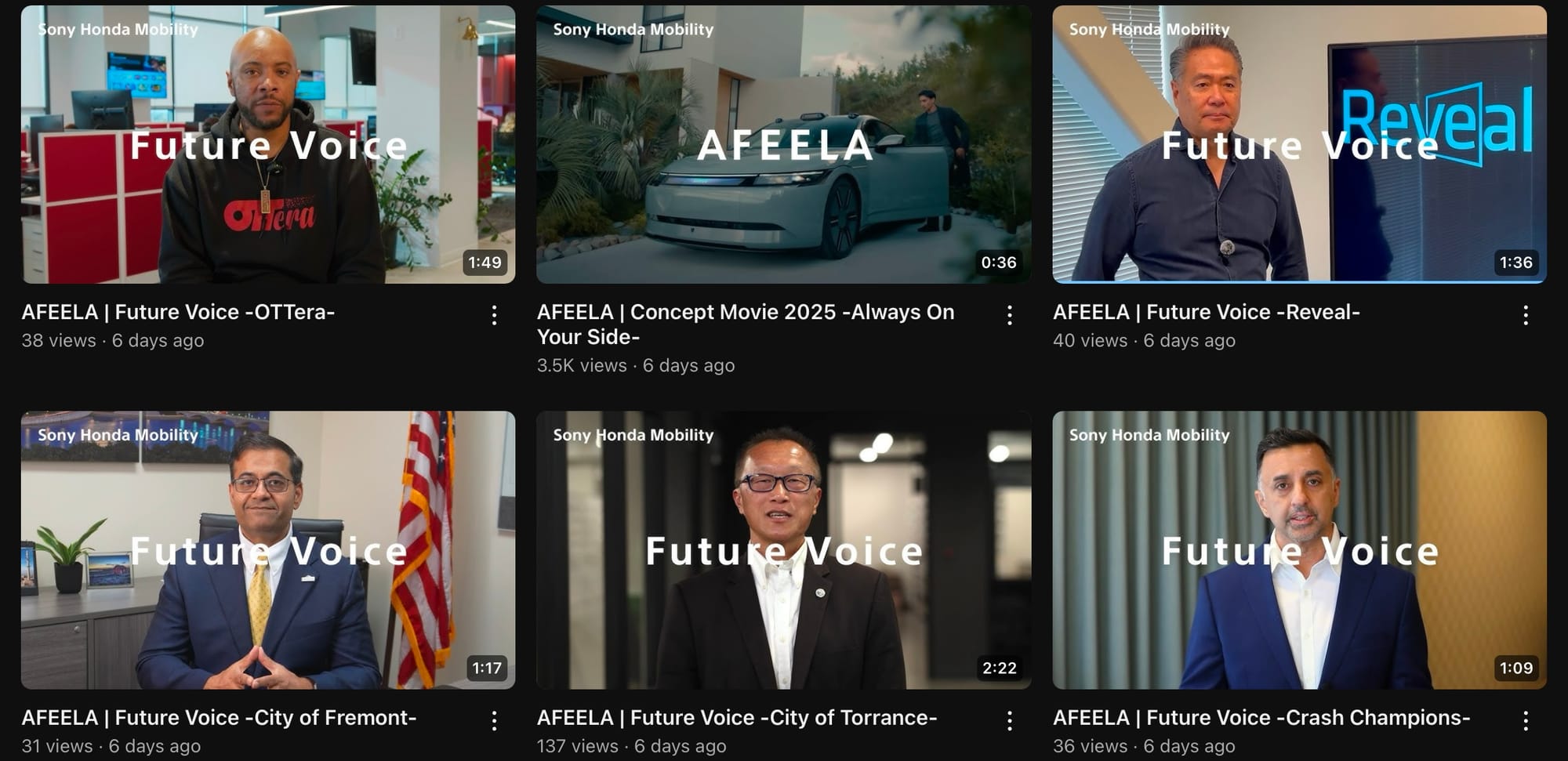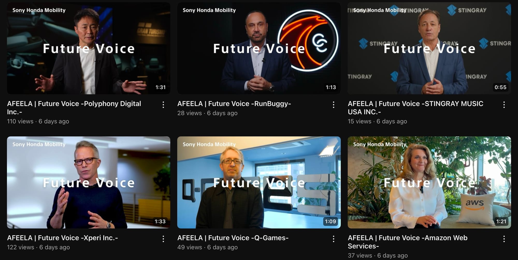 Partner videos posted to the AFEELA YouTube page • SHM-Afeela