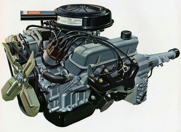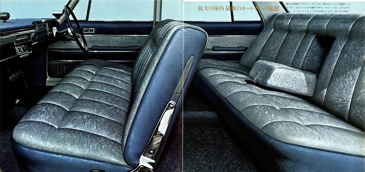 The power door locks were electromagnetic, by the way. Updated through its run to include a 4-speed manual transmission with a floor shifter and a 3-speed manual transmission version with overdrive, the Crown Eight ended up also being the country's first V8-powered sports sedan.