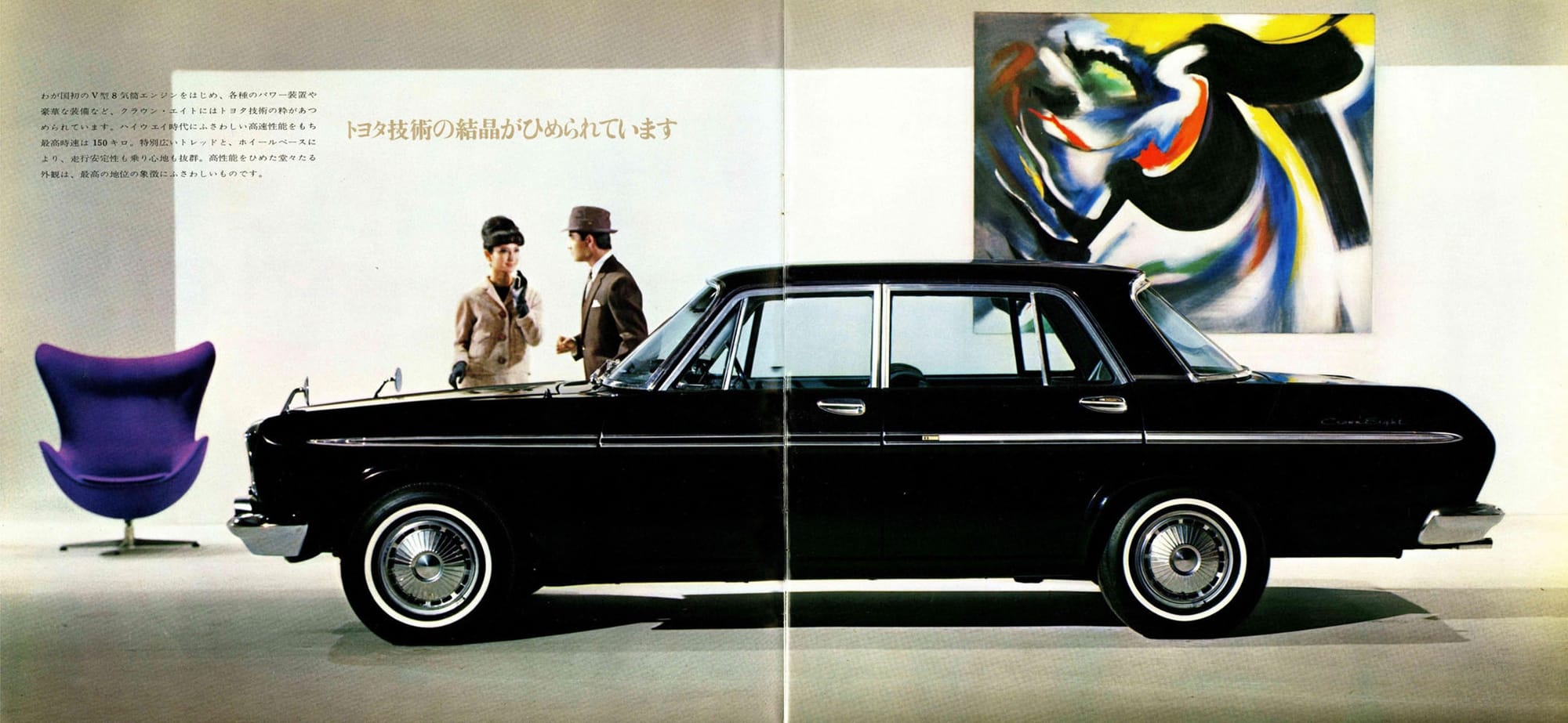 In Japan, the Crown Eight, on-sale as the country began the nine day long celebration before Emperor Showa's birthday in 1964, exceeded every vehicle size regulation in a bid to compete with the large American cars that were favoured by executives.
