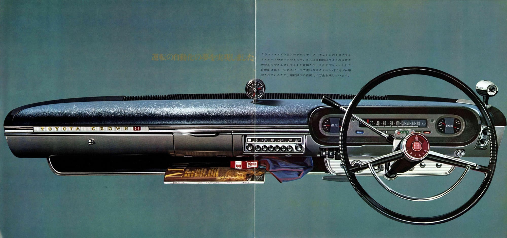 Japan's popular cartoon Mighty Atom (Astro Boy over here) had been on the air for more than a decade by this point, and when living in a society where kids are watching a show with a ‘robot’ star, Toyota must have felt it necessary to cram ever last whizz-bang feature into the Crown Eight.